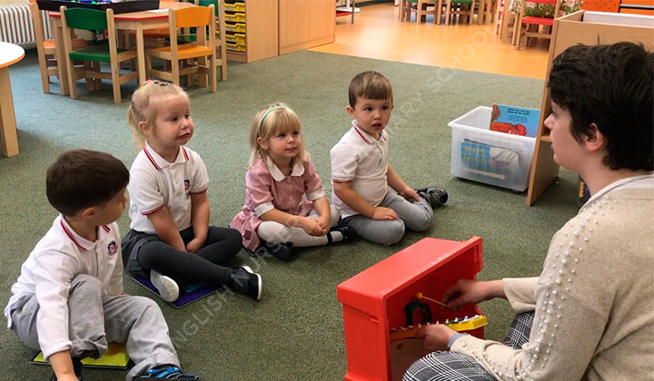 Сможете угадать разные музыкальные инструменты по их звучанию? Дети из группы Nursery на музыкальных занятиях с мисс Кэти легко справляются!